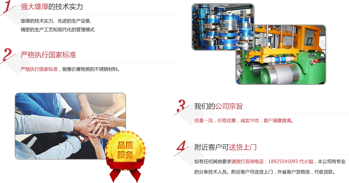 深圳栋帝不锈钢板有限公司2017年6月成立。我司于2006年开始经营不锈钢销售,目前公司总部位于东莞市长安镇,已成为当地不锈钢销售行业内规模最大、实力最强、品种多、规格全、库存大、钢厂多、价格实惠和信誉最好的企业之一,公司库存始终保持数千吨以上。我司始终秉承着“诚信合作,共同发展”的核心经营理念,并把产品质量与顾客服务放在首位。为此,我司引入目前最先进、最新型的加工机器设备,并开办了送货上门服务。公司主要批发和零售不锈钢精密带、工程材料和装饰材料等,以及精密加工分条。代理厂家: 上海宝钢、宝新、浦项、太钢、特钢、酒钢、甬金、承德、本钢、宏旺和国内各大精密钢带及进口材料等。